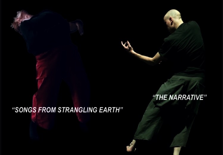 "Songs from Strangling Earth." This solo is inspired by the music from the band Bikkie Skeef. The dark and mysterious sound was and still is a challenge for me to work with. The many layers of sound, the underlying meaning and the unpredictable changes still require my full concentration as a dancer and choreographer in this piece.