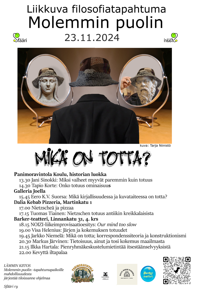 Sunnuntain päiväesityksen jälkeen filosofi ja ympäristökasvattaja Tuomas Tiainen Sfääri ry:stä vetää keskustelutilaisuuden esityksen teemoista. Keskustelun kesto noin reilu tunti. Tervetuloa!