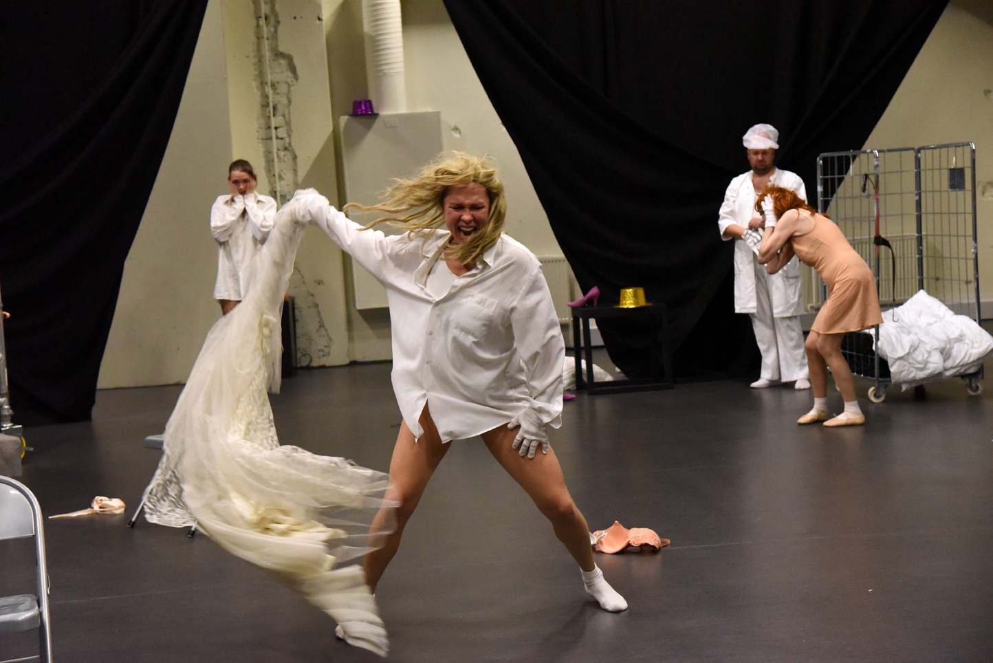 HAJONNUT MINUUS ASTUU NÄYTTÄMÖLLE CHEKHOV MACHINEN KANTAESITYKSESSÄ.