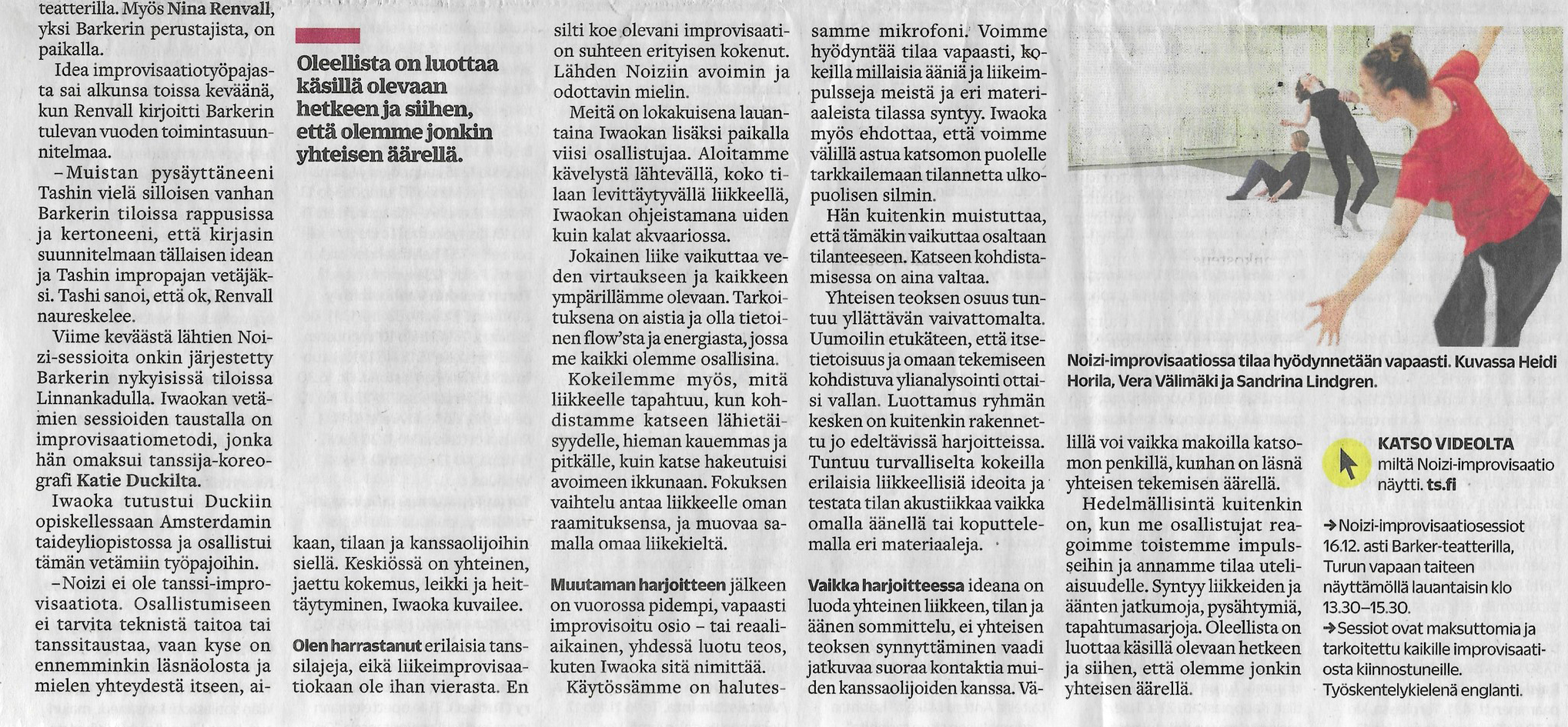 NOIZI improvisaatio sessio on Barkerilla järjestettävä, koko syksyn jatkuva improvisaatiosessioiden sarja, jonka tarkoituksena on opiskella improvisaatiota esiintymismenetelmänä. NOIZI keskittyy reaaliaikaisen teoksen monitaiteiseen harjoitteluun.